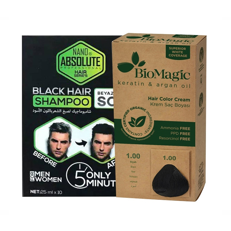 Nano Absolute شامبو نانو أبسولوت لتحويل الشعر الأبيض إلى أسود.