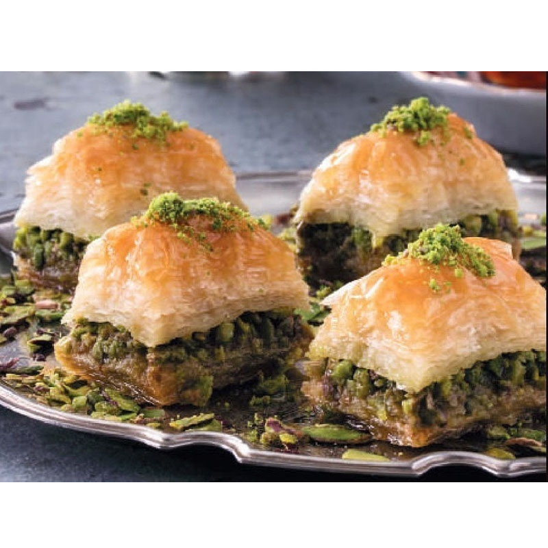 مصنوعة من أجود المكونات ، الفستق البقلاوة لدينا عبارة عن مزيج لذيذ من طبقات المعجنات الرقيقة والحشو السخي من الفستق المحمص الفاخر. تقدم كل قضمة مزيجًا متناغمًا من النكهات الحلوة والمكسرات التي ستثير حواسك.