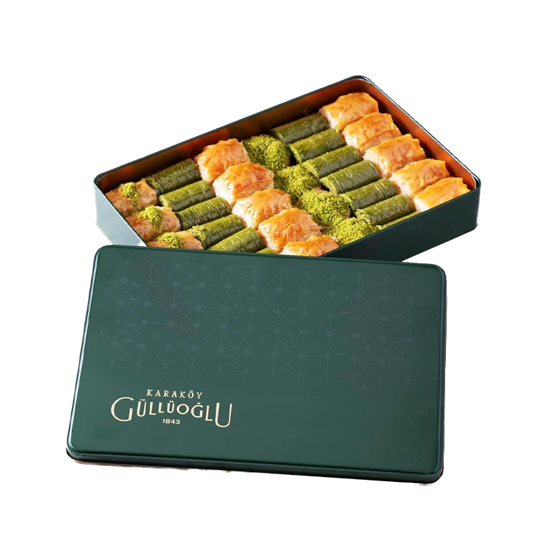 تقدم لكم البقلاوة التركية الشهيرة من مدينة اسطنبول وخصوصاً منطقة كاراكوي ومن الحلواني جوللوغلو في علبة هدية فاخرة ، وهي تشكيلة مبهجة من أصناف البقلاوة الشهية. معبأة في صندوق بوزن 1 كجم ، هذه المجموعة مثالية لتدلل نفسك أو تقدم هدية لأحبائك. دعنا نستكشف ميزات هذا المنتج الرائع: