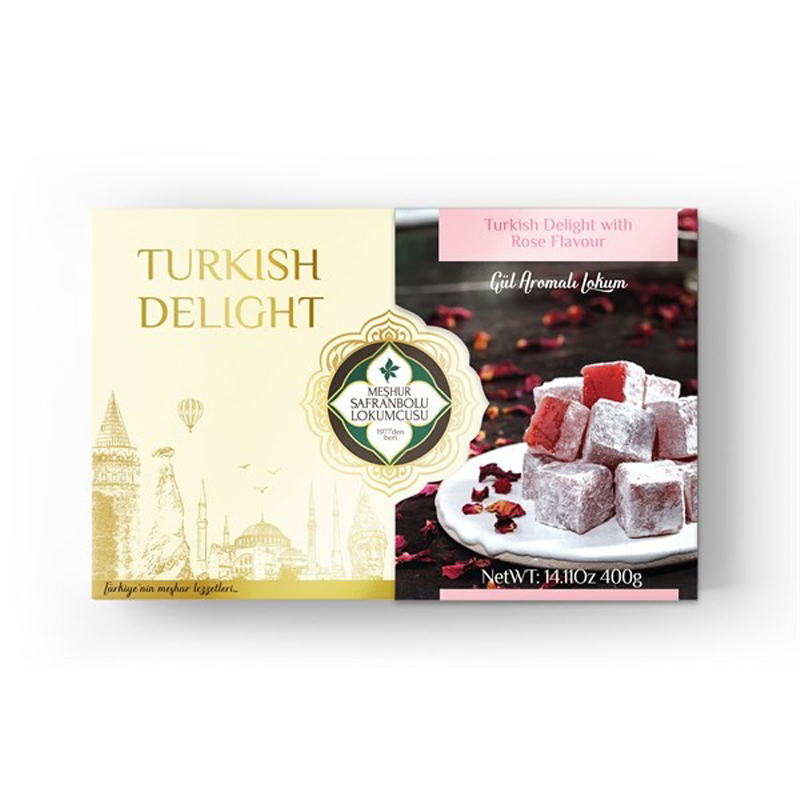 يمكن الاستمتاع بـ Safran lokum Rose Turkish Delight كحلوى أو وجبة خفيفة أو هدية.