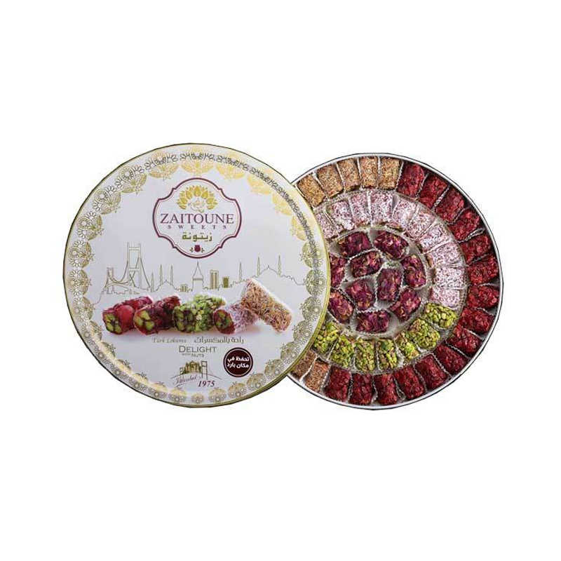 استمتع بالمذاق الرائع لأرقى الحلويات التركية مع الحلقوم التركي الفاخر من حلويات زيتونة. يتم إعداد هذه الحلويات اللذيذة الصغيرة يدويًا باستخدام مكونات أصلية ووصفات قديمة، مما يوفر مزيجًا رائعًا من القوام والنكهات.