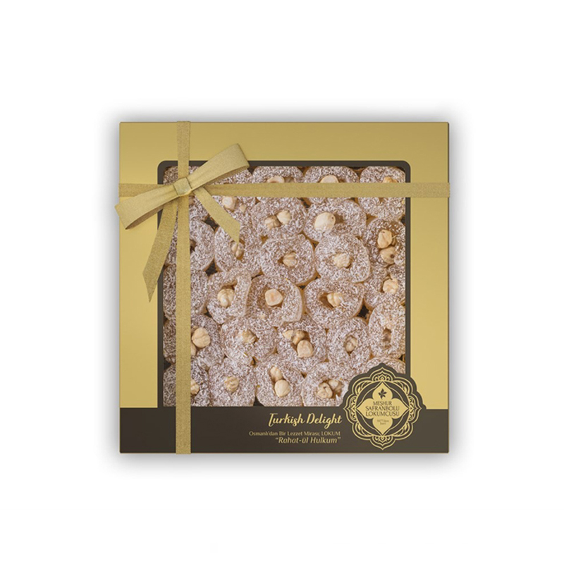 Safran lokum Turkish Delight بالبندق 650 جرام حلوى خالية من الغلوتين وصديقة للنباتيين.