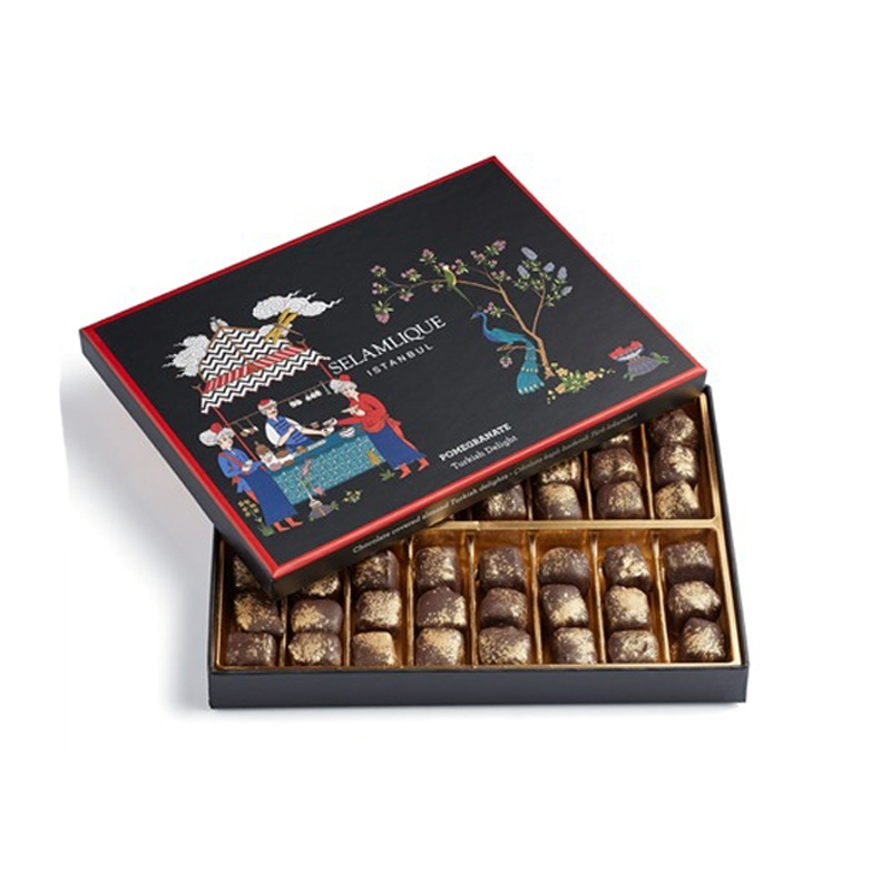 Selamlique Pomegranate Turkish Delight 500g منتج نباتي وخالي من الغلوتين. إنه مصنوع من مكونات طبيعية بالكامل وخالي من الألوان والنكهات الاصطناعية والمواد الحافظة.