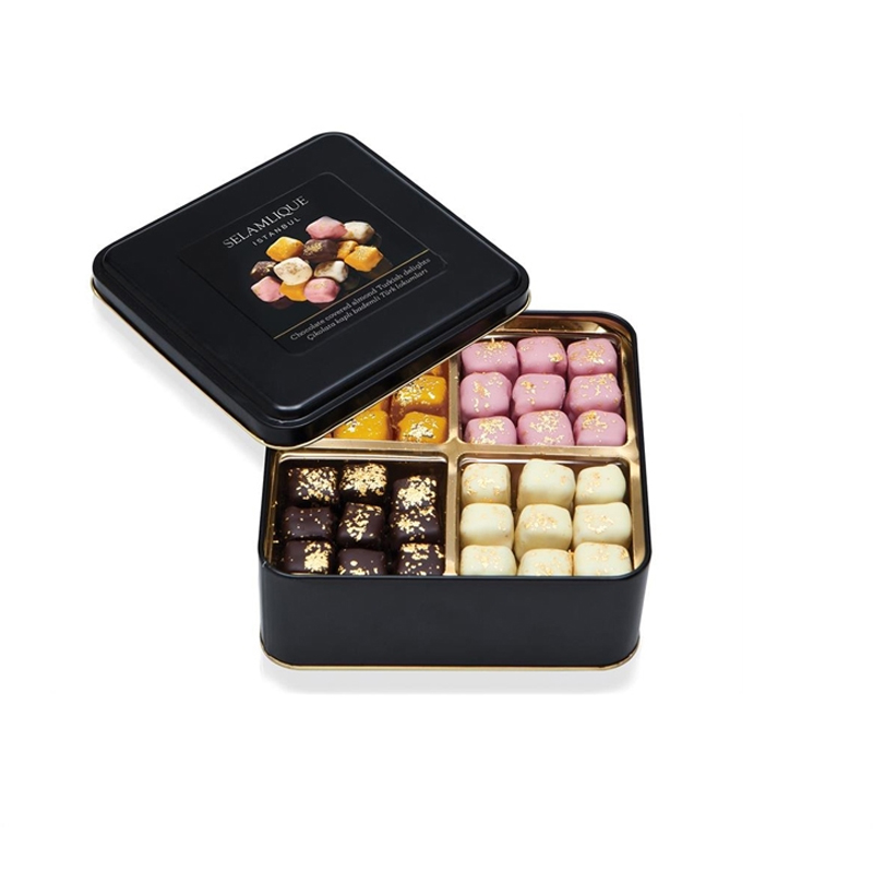 الحلوى التركية المختلطة من سلامليك 800 جرام هي طريقة لذيذة وأنيقة للاستمتاع بتجربة الحلوى التركية التقليدية. تتضمن هذه المجموعة مجموعة متنوعة من النكهات ، بما في ذلك اللوز المغطى بالشوكولاتة والورد والفستق والمستكة. الحلوى التركية مصنوعة من مكونات عالية الجودة ويتم رشها بغبار الذهب لإضفاء لمسة فاخرة.