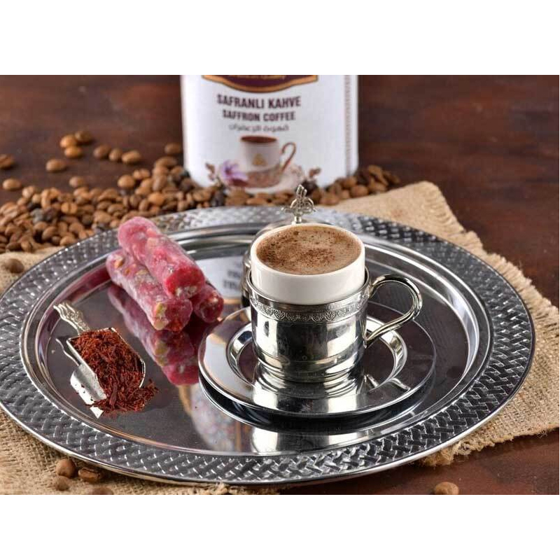 تجربة القهوة التركية الراقية: تذوق الثراء التقليدي للقهوة التركية المعززة بالرائحة الرقيقة والحلاوة الرقيقة للزعفران.