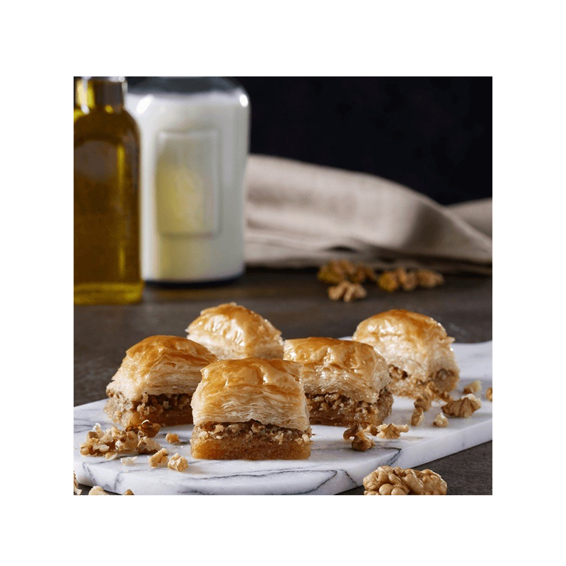 تم إعداده بعناية باستخدام مكونات نباتية ، مما يتيح لك الاستمتاع بالطعم الأصيل للبقلاوة مع احترام تفضيلاتك الغذائية ، والمكون الرئيسي في هذه الحلوى اللذيذة هو الجوز عالي الجودة ، والمعروف بفوائده الصحية ونكهته المميزة.