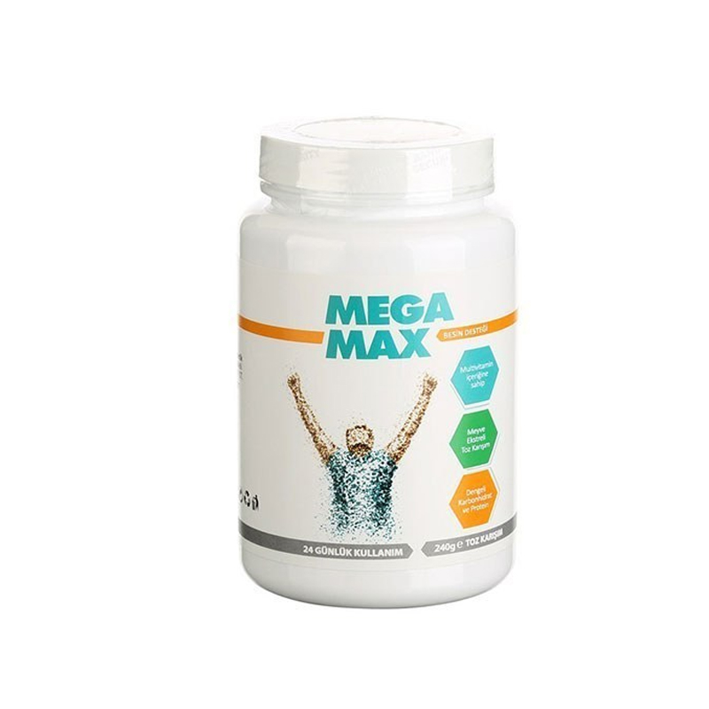 مكمل ميجاماكس لزيادة الوزن والكتلة العضلية من خلاصة الفاكهة.محتويات:قرع مر، كاكاو، حبوب اللقاح، الكينين، مسحوق الحليب، مسحوق الموز، بروبوليس، مسحوق الخروب، مسحوق القرفة، مسحوق جوز الهند، مسحوق السكر.طريقة الإستخدام:ينصح بخلط ملعقة صغيرة (ملعقة الشاي) مع نصف كوب حليب، ماء أو عصير فاكهة وشربه بعده الأكل في الصباح والمساء.