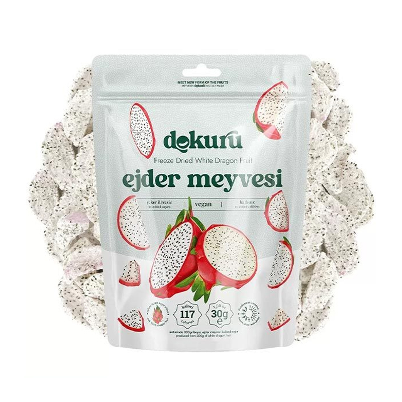 استمتع بوجبة خفيفة صحية ولذيذة مع شرائح فاكهة التنين البيضاء المجففة بالتجميد من Dokuru. هذه الشرائح مصنوعة من فاكهة التنين الطازجة بنسبة 100%، بدون أي إضافات أو مواد حافظة أو سكر، لتمنحك تجربة طعام طبيعية ومغذية. مثالية كوجبة خفيفة أو لإضافتها إلى أطباقك المفضلة.