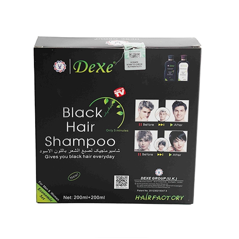 احصل على شعر أسود لامع في دقائق: عبوة واحدة من شامبو Dexe المذهل لصبغ الشعر الفوري لن تستغرق سوى بضع دقائق لتمنحك لون شعر أسود لامع يدوم حتى 30 يومًا